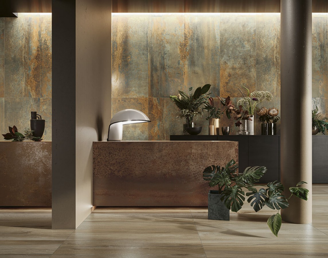 Керамогранит Serenissima 120x60 9.5мм Construire metallo rame ret матовая коричневый