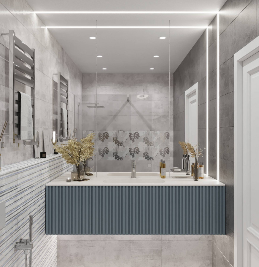 Плитка Axima 60x5 Куба бордюр G серая 22шт матовая белый синий