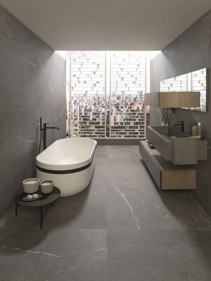 Плитка настенная Krion 120x45 Lucerna Silver матовый под камень серый 10мм 100314058