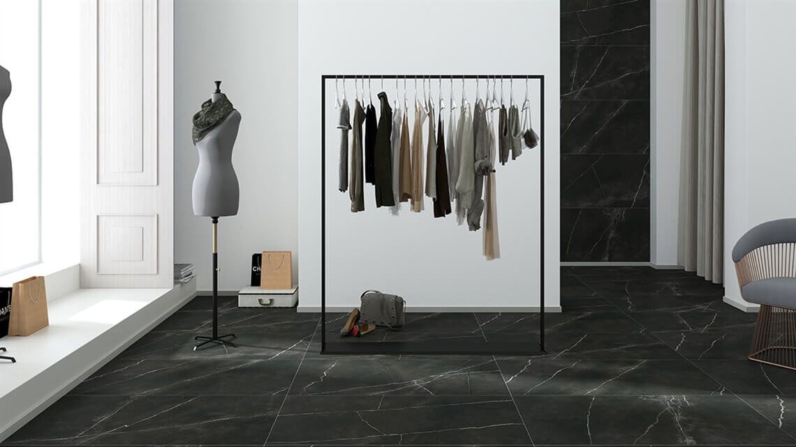 Плитка Yurtbay 120x60 8мм Quasar Matte Black Rectportile P10758.6 матовая черный мрамор