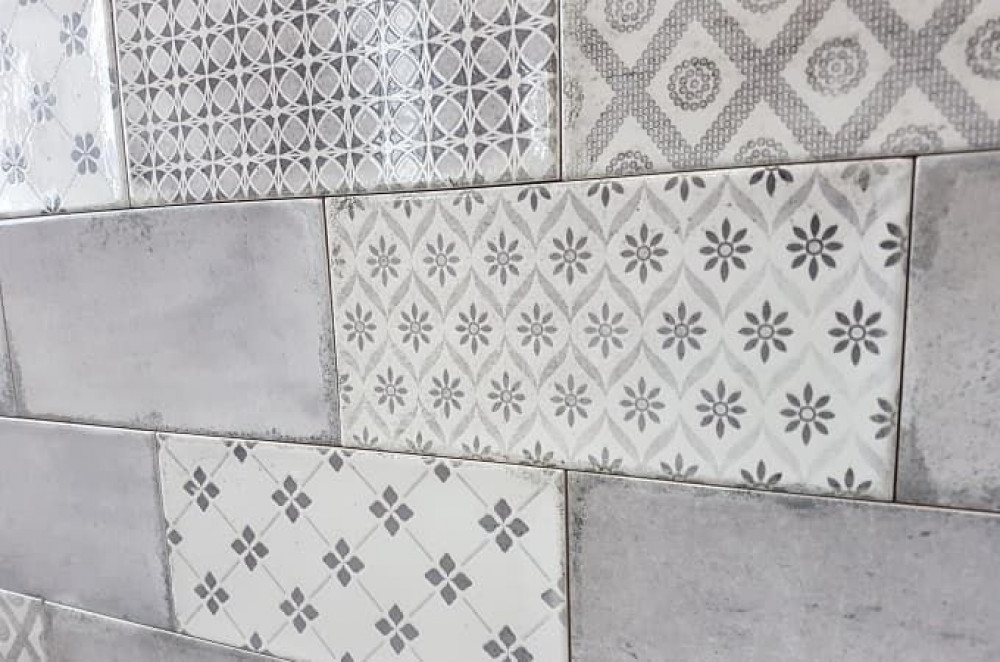 Плитка Fabresa 20x10 Decor Vita Mare Mix гладкая + рельефная глянцевая бело-серый