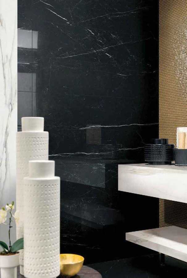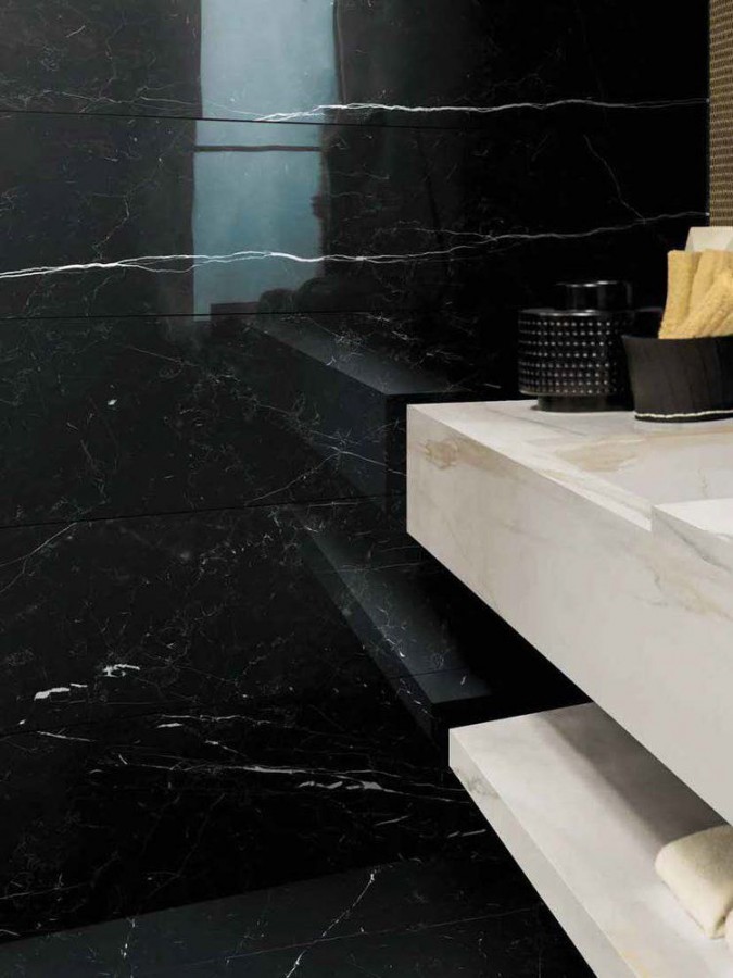 Плитка Rex Ceramiche 240x120 6мм I Classici Marquinia Glossy R 750885 глянцевая черный мрамор