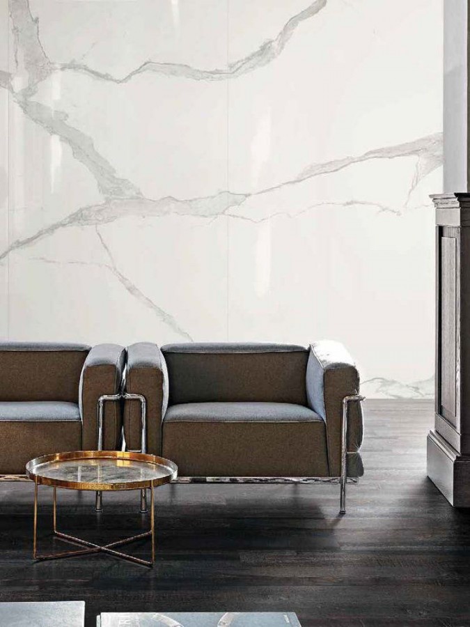 Плитка Rex Ceramiche 280x120 6мм I Classici Calacatta Glossy120X280 R 757835 глянцевая белый мрамор