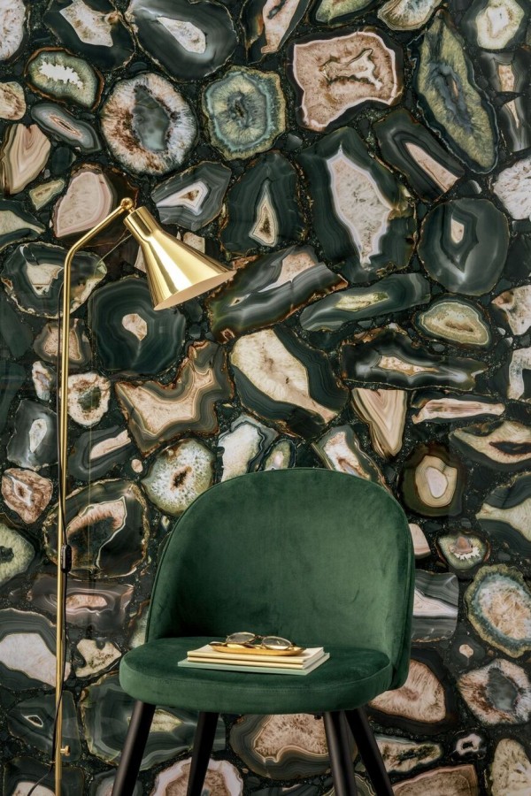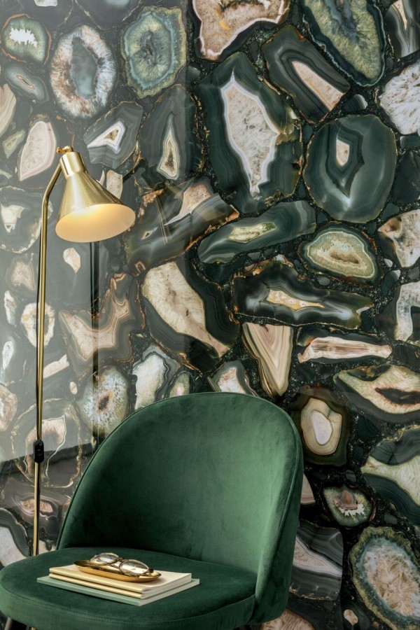 Плитка Rex Ceramiche Viridian Gold Satin Rett 779931 120x60 6мм сатинированная зеленый камень, мрамор, оникс, с золотом
