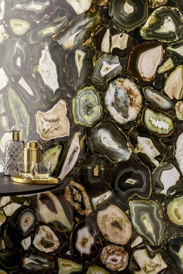 Плитка Rex Ceramiche Viridian Gold Satin Rett 779916 280x120 6мм сатинированная мультиколор, зеленый камень, мрамор, оникс, с золотом