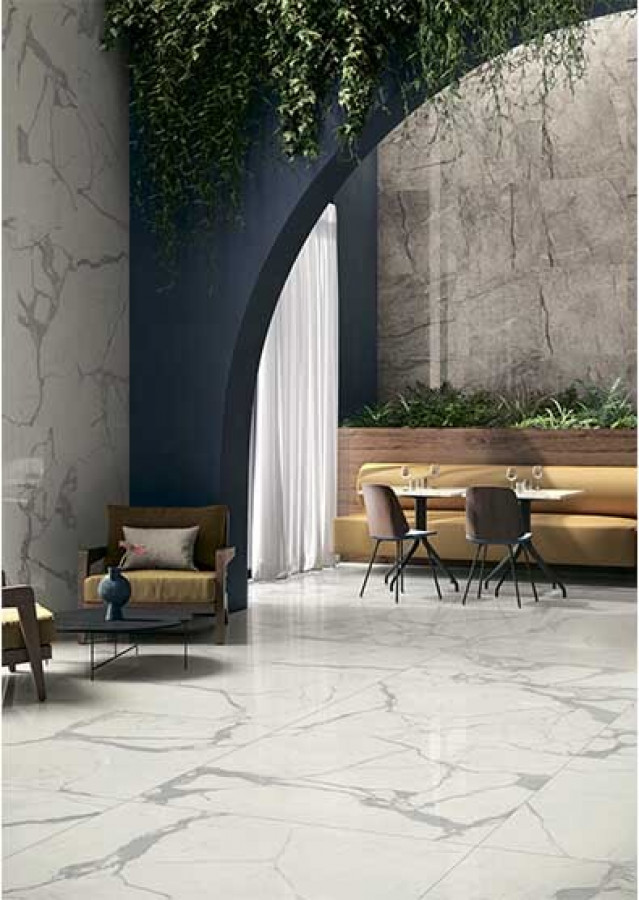 Керамогранит Caesar 278x120 Majestic White Luc Anima Futura глянцевая, полированная белый мрамор