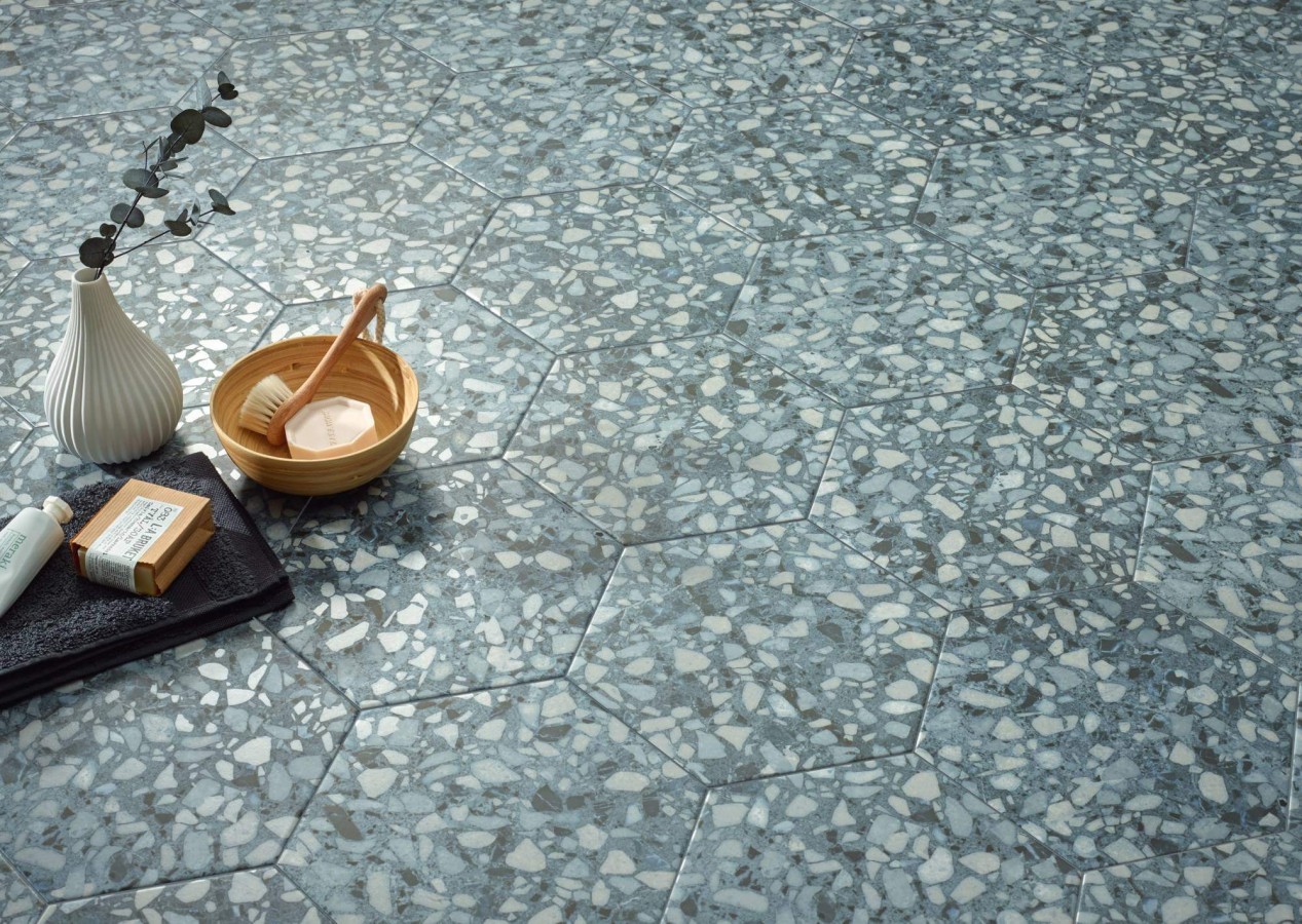 Керамогранит Durstone 27x23 Six terazzo blue матовая голубой