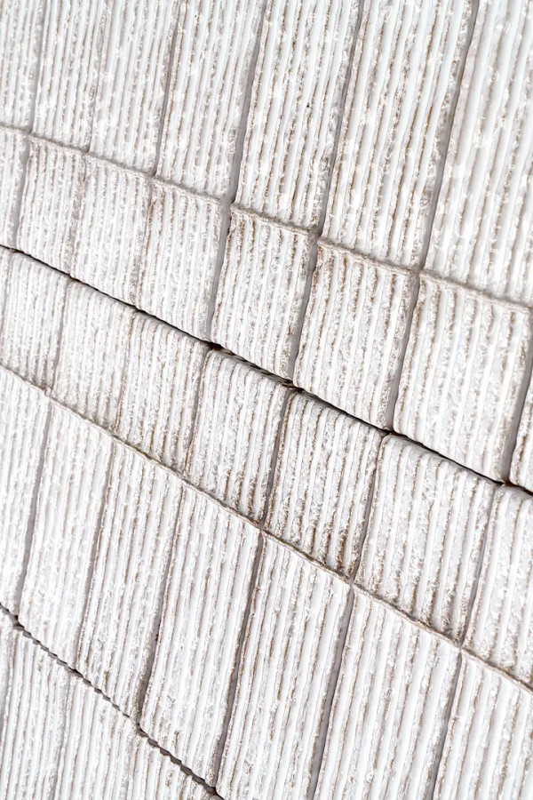 Плитка Mutina 23x8 Linea Bianco Chamotte глянцевая, рельефная белый в полоску