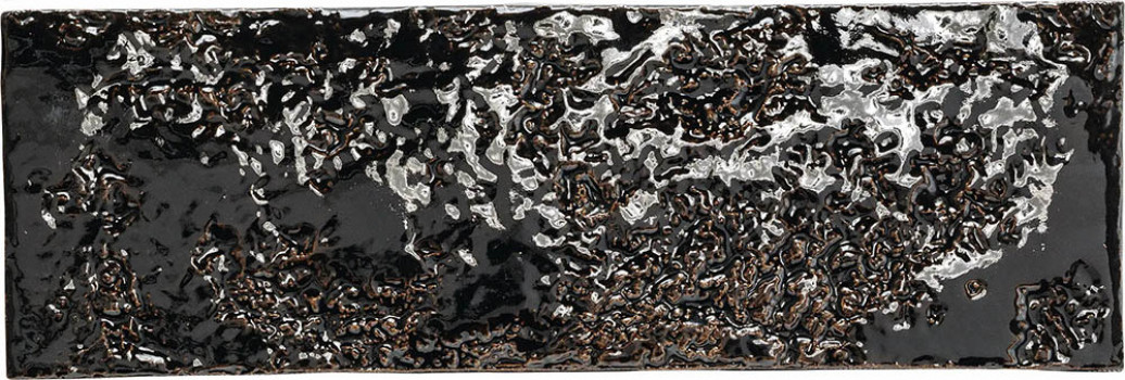 Плитка Mutina 23x8 Quadra Nera Chamotte глянцевая, рельефная черный камень