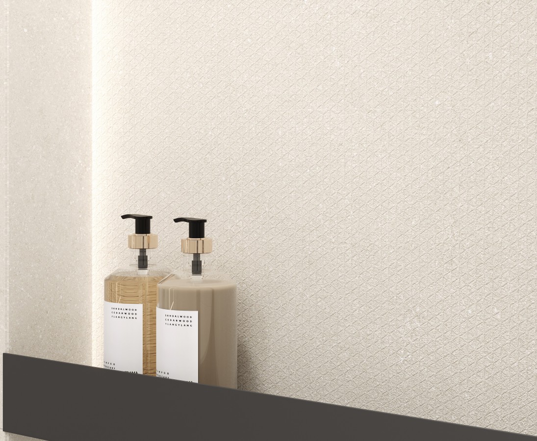 Керамогранит 120x60 Аттол Опал ПРО Деко Акцентс бежевый микроструктурный R10/A Бархат КР Аттол Опал Про глазурованная матовая Laparet