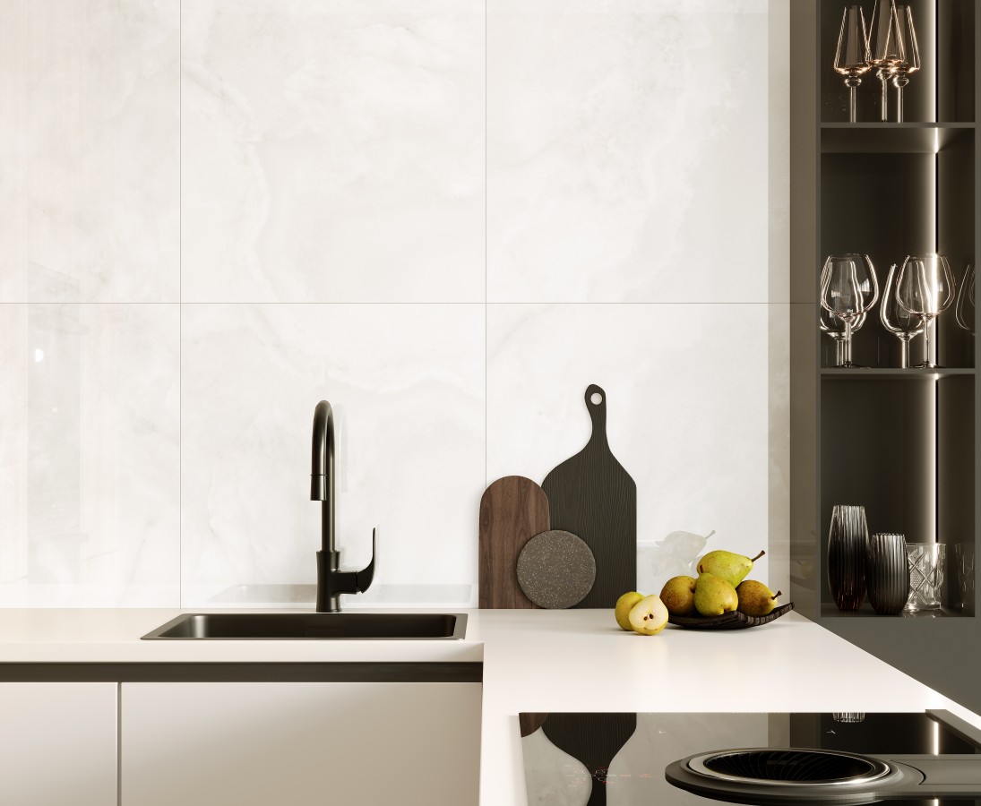 Плитка 80x40 бианко настенная 48027R обрезная Космо глазурованная глянцевая Laparet